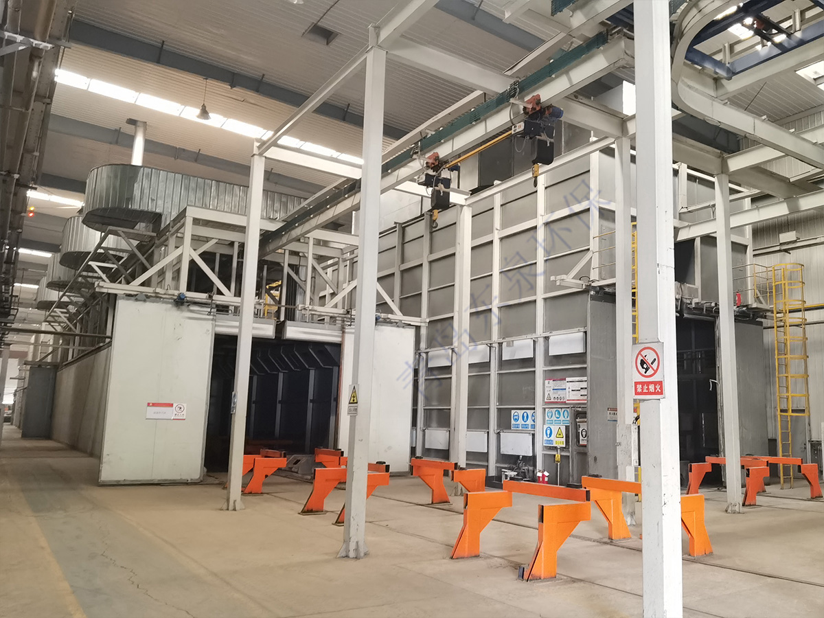 噴漆時(shí)外部空氣經(jīng)進(jìn)風(fēng)口初級過(guò)濾棉過(guò)濾后送入到噴漆房靜壓室內,再經(jīng)頂部過(guò)濾棉二次過(guò)濾均流后進(jìn)入噴漆房作業(yè)空間,氣流由上向下在工件周?chē)纬娠L(fēng)幕。這時(shí)噴漆房?jì)扔休d風(fēng)速可達0.2-0.25m/s以上,噴漆時(shí)產(chǎn)生的漆霧不會(huì )在操作者呼吸帶處停留,而隨氣流迅速下降,之后在排風(fēng)機的作用下,氣流經(jīng)底部環(huán)保處理(干式漆霧過(guò)濾棉)以及風(fēng)機進(jìn)風(fēng)口前的廢氣處理裝置(活性炭)處理后由排風(fēng)道高空排放,并且排出的氣體符合GB16297-1996《大氣污染物綜合排放標準》。